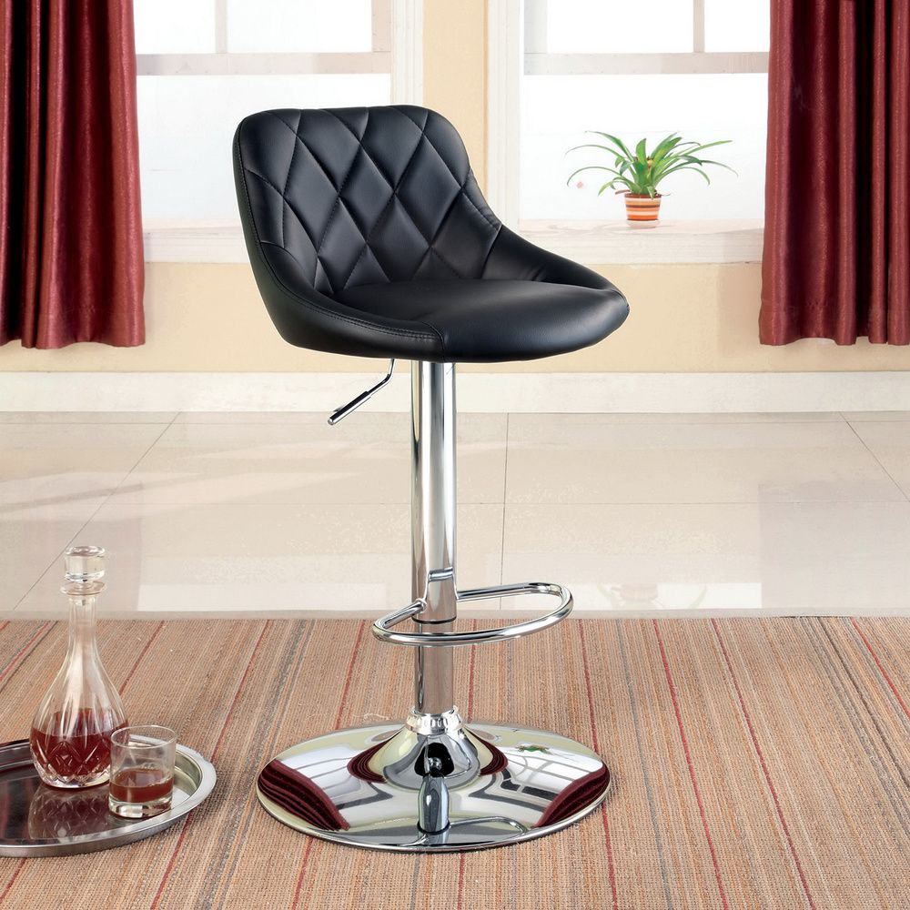 Элегантная черная искусственная кожа и современные ножки придают этим барным стульям изысканный вид.