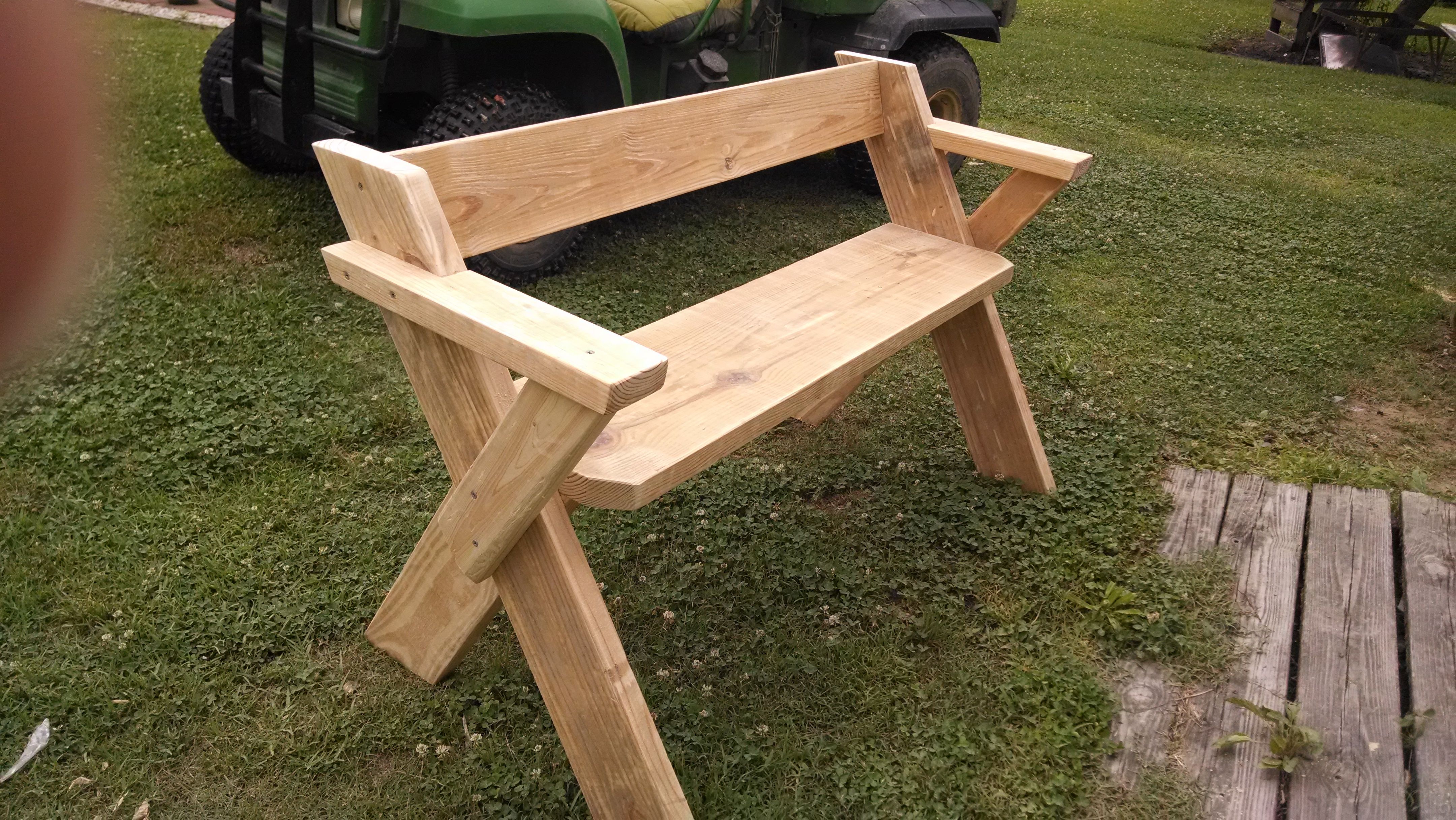 Материалом для этого стола послужили разобранные палеты. Естественно, можно использовать новые доски. Только одно условие — они должны быть сухими. Можно купить сухие (это дороже стоит) или купить обычные, сложить их где-нибудь в проветриваемые штабеля и выдержать так не менее 4 месяцев, а лучше — полгода. Вообще любую мебель, включая садовые скамейки, делают из сухой древесины.